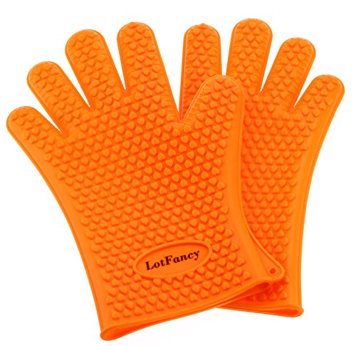 The LotFancy Heat Resistant Silicone Gloves BBQ Grill Gloves for Cooking Baking Barbecue Non Slip Textured Grip (Two Orange Gloves) is that i recomended for heat resistant silicone.