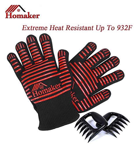 Read main features below to know more about Homaker 932F Extreme Heat Resistant Gloves Oven Mitts EN407 Certified Grill Gloves for BBQ Fireplace Hot Objects Bonus Meat Claws(BG-001).You can compare with another product for wood stove steamer